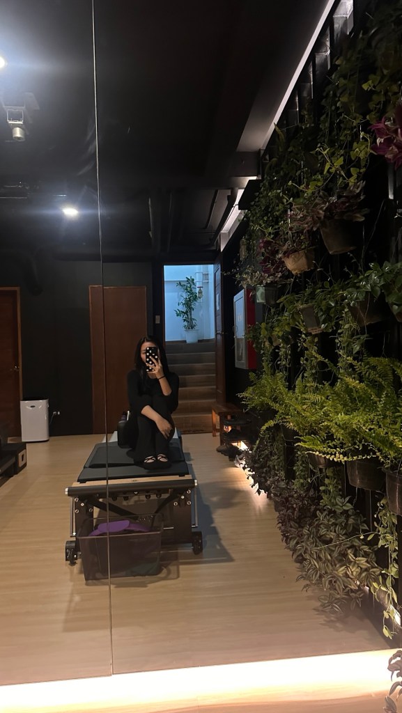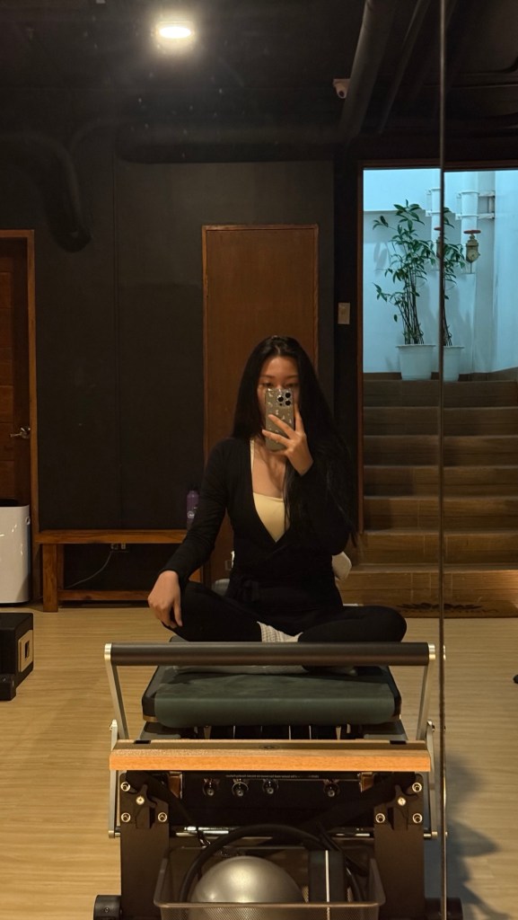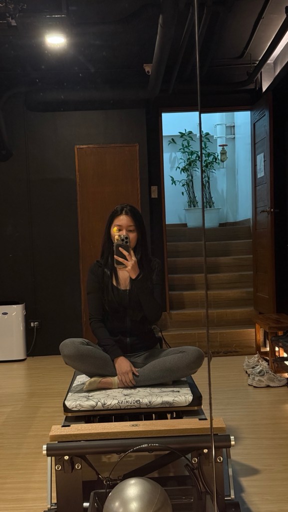 i’m not a “gym” person, mostly due to memories of me puking my guts out and fainting at the gym circa covid era. running is also a hard pass for no reason (it’s just not my thing). pilates is the only workout that i actually enjoy + the occasional yoga to silence my inner demons.